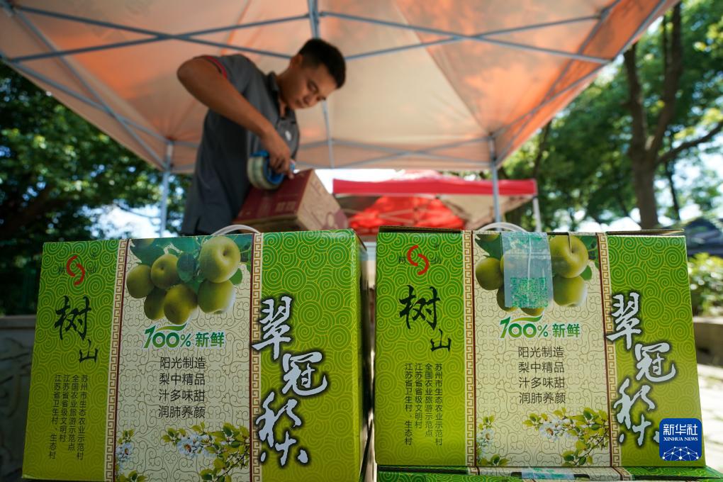 2023-08-06 15:55:19 來源:新華網 責任編輯:李雅蘭 作者:這是8月3日拍攝的蘇州市樹山村(無人機照片)。 眼下正值江蘇省蘇州市高新區通安鎮樹山村翠冠梨豐收季。在當地千畝梨園里,一顆顆飽滿圓潤的梨子掛滿枝頭,碩果飄香,農戶抓緊采摘、銷售,眾多市民游客前來品嘗、選購。目前樹山村翠冠梨種植面積達1060畝,種植農戶370余戶,年產量約1900噸,年總產值約2000萬元。 進入夏季以來,蘇州市樹山村結合當地特色,陸續推出“梨奇夏日”市集、“村潮澎湃”音樂節、“樹山星享夜”市集等活動,豐富文旅內容,促進農文旅產業深度融合,生產、生活、生態“三生”同步改善,逐步實現樹山村由“鄉村旅游”向“鄉村度假生活”的品牌升級,吸引全國各地游客走進樹山,融入樹山民俗、文化、旅游活動,體驗姑蘇城外的夏日田園生活。 新華社記者 李博 攝 這是8月3日拍攝的蘇州市樹山村(無人機照片)。 眼下正值江蘇省蘇州市高新區通安鎮樹山村翠冠梨豐收季。在當地千畝梨園里,一顆顆飽滿圓潤的梨子掛滿枝頭,碩果飄香,農戶抓緊采摘、銷售,眾多市民游客前來品嘗、選購。目前樹山村翠冠梨種植面積達1060畝,種植農戶370余戶,年產量約1900噸,年總產值約2000萬元。 進入夏季以來,蘇州市樹山村結合當地特色,陸續推出“梨奇夏日”市集、“村潮澎湃”音樂節、“樹山星享夜”市集等活動,豐富文旅內容,促進農文旅產業深度融合,生產、生活、生態“三生”同步改善,逐步實現樹山村由“鄉村旅游”向“鄉村度假生活”的品牌升級,吸引全國各地游客走進樹山,融入樹山民俗、文化、旅游活動,體驗姑蘇城外的夏日田園生活。 新華社記者 李博 攝 這是8月3日拍攝的蘇州市樹山村梨園(無人機照片)。 眼下正值江蘇省蘇州市高新區通安鎮樹山村翠冠梨豐收季。在當地千畝梨園里,一顆顆飽滿圓潤的梨子掛滿枝頭,碩果飄香,農戶抓緊采摘、銷售,眾多市民游客前來品嘗、選購。目前樹山村翠冠梨種植面積達1060畝,種植農戶370余戶,年產量約1900噸,年總產值約2000萬元。 進入夏季以來,蘇州市樹山村結合當地特色,陸續推出“梨奇夏日”市集、“村潮澎湃”音樂節、“樹山星享夜”市集等活動,豐富文旅內容,促進農文旅產業深度融合,生產、生活、生態“三生”同步改善,逐步實現樹山村由“鄉村旅游”向“鄉村度假生活”的品牌升級,吸引全國各地游客走進樹山,融入樹山民俗、文化、旅游活動,體驗姑蘇城外的夏日田園生活。 新華社記者 李博 攝 農戶在蘇州市樹山村梨園內采摘翠冠梨(8月3日攝)。 眼下正值江蘇省蘇州市高新區通安鎮樹山村翠冠梨豐收季。在當地千畝梨園里,一顆顆飽滿圓潤的梨子掛滿枝頭,碩果飄香,農戶抓緊采摘、銷售,眾多市民游客前來品嘗、選購。目前樹山村翠冠梨種植面積達1060畝,種植農戶370余戶,年產量約1900噸,年總產值約2000萬元。 進入夏季以來,蘇州市樹山村結合當地特色,陸續推出“梨奇夏日”市集、“村潮澎湃”音樂節、“樹山星享夜”市集等活動,豐富文旅內容,促進農文旅產業深度融合,生產、生活、生態“三生”同步改善,逐步實現樹山村由“鄉村旅游”向“鄉村度假生活”的品牌升級,吸引全國各地游客走進樹山,融入樹山民俗、文化、旅游活動,體驗姑蘇城外的夏日田園生活。 新華社記者 李博 攝 農戶在蘇州市樹山村梨園內采摘翠冠梨(8月3日攝)。 眼下正值江蘇省蘇州市高新區通安鎮樹山村翠冠梨豐收季。在當地千畝梨園里,一顆顆飽滿圓潤的梨子掛滿枝頭,碩果飄香,農戶抓緊采摘、銷售,眾多市民游客前來品嘗、選購。目前樹山村翠冠梨種植面積達1060畝,種植農戶370余戶,年產量約1900噸,年總產值約2000萬元。 進入夏季以來,蘇州市樹山村結合當地特色,陸續推出“梨奇夏日”市集、“村潮澎湃”音樂節、“樹山星享夜”市集等活動,豐富文旅內容,促進農文旅產業深度融合,生產、生活、生態“三生”同步改善,逐步實現樹山村由“鄉村旅游”向“鄉村度假生活”的品牌升級,吸引全國各地游客走進樹山,融入樹山民俗、文化、旅游活動,體驗姑蘇城外的夏日田園生活。 新華社記者 李博 攝 農戶在蘇州市樹山村整理剛采摘的翠冠梨(8月4日攝)。 眼下正值江蘇省蘇州市高新區通安鎮樹山村翠冠梨豐收季。在當地千畝梨園里,一顆顆飽滿圓潤的梨子掛滿枝頭,碩果飄香,農戶抓緊采摘、銷售,眾多市民游客前來品嘗、選購。目前樹山村翠冠梨種植面積達1060畝,種植農戶370余戶,年產量約1900噸,年總產值約2000萬元。 進入夏季以來,蘇州市樹山村結合當地特色,陸續推出“梨奇夏日”市集、“村潮澎湃”音樂節、“樹山星享夜”市集等活動,豐富文旅內容,促進農文旅產業深度融合,生產、生活、生態“三生”同步改善,逐步實現樹山村由“鄉村旅游”向“鄉村度假生活”的品牌升級,吸引全國各地游客走進樹山,融入樹山民俗、文化、旅游活動,體驗姑蘇城外的夏日田園生活。 新華社記者 李博 攝 快遞員在整理包裝翠冠梨,準備發快遞(8月3日攝)。 眼下正值江蘇省蘇州市高新區通安鎮樹山村翠冠梨豐收季。在當地千畝梨園里,一顆顆飽滿圓潤的梨子掛滿枝頭,碩果飄香,農戶抓緊采摘、銷售,眾多市民游客前來品嘗、選購。目前樹山村翠冠梨種植面積達1060畝,種植農戶370余戶,年產量約1900噸,年總產值約2000萬元。 進入夏季以來,蘇州市樹山村結合