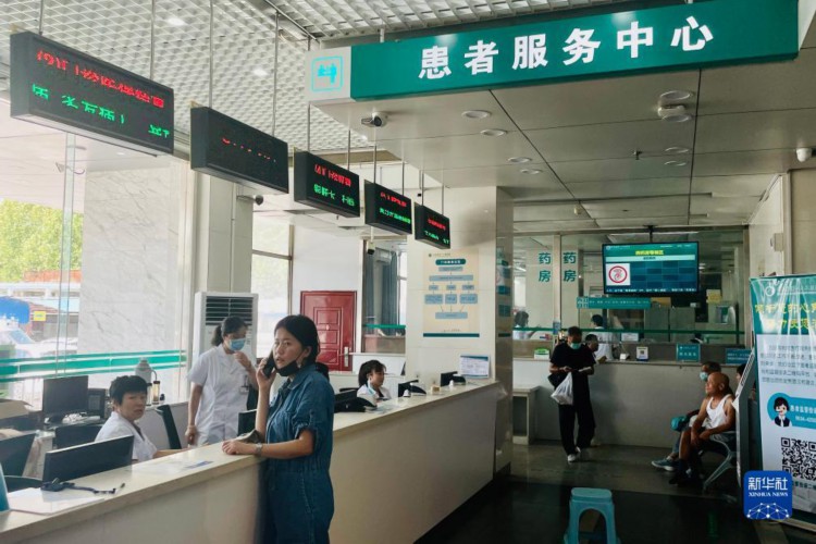 8月6日,在平原縣第一人民醫(yī)院患者服務中心內,患者向值班醫(yī)生咨詢情況。