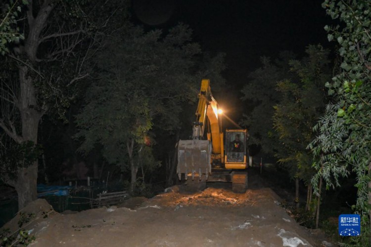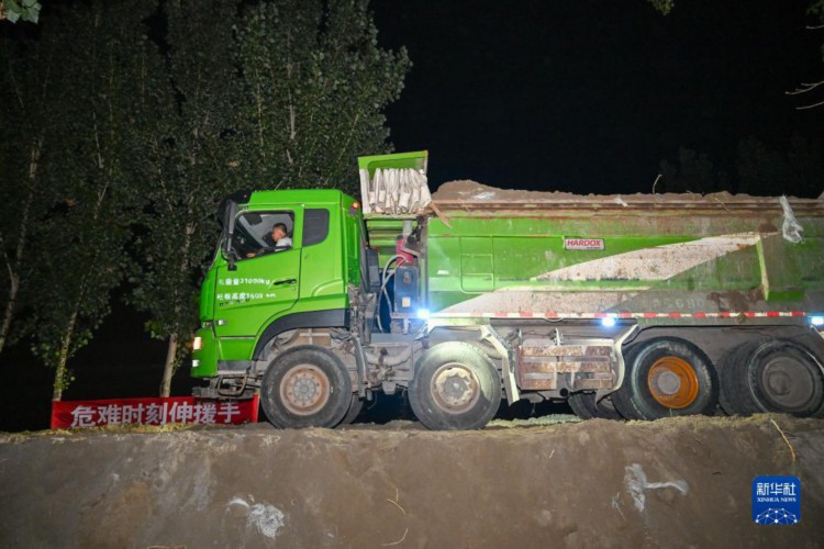在天津市靜海區大清河臺頭段南堤,大型工程機械夜間運輸加固堤壩的物資(8月7日攝)。 近期,位于天津市靜海區的大清河臺頭段水位持續上漲,臺頭鎮等地防洪形勢嚴峻。根據最新測報,截至8月9日上午10時,大清河臺頭水位接近6米,接近洪水預測的峰值。 連日來,消防救援人員、公安干警、鎮村干部、留守人員等晝夜開展村莊及河堤巡查、岸堤加固等防洪作業,做好處置突發險情的各項準備,全力保障大清河堤防安全,守護臺頭鎮全鎮18個村的平安。 新華社記者 孫凡越 攝