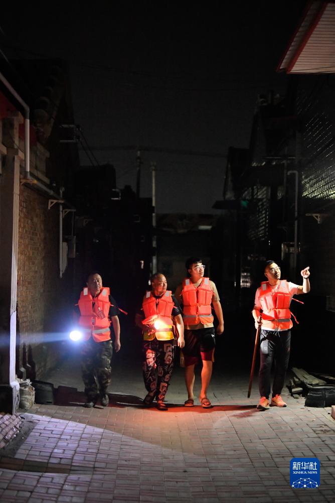 天津市靜海區(qū)臺頭鎮(zhèn)民生村村干部和留守人員在村莊內(nèi)巡查(8月7日攝)。 近期,位于天津市靜海區(qū)的大清河臺頭段水位持續(xù)上漲,臺頭鎮(zhèn)等地防洪形勢嚴(yán)峻。根據(jù)最新測報,截至8月9日上午10時,大清河臺頭水位接近6米,接近洪水預(yù)測的峰值。 連日來,消防救援人員、公安干警、鎮(zhèn)村干部、留守人員等晝夜開展村莊及河堤巡查、岸堤加固等防洪作業(yè),做好處置突發(fā)險情的各項準(zhǔn)備,全力保障大清河堤防安全,守護(hù)臺頭鎮(zhèn)全鎮(zhèn)18個村的平安。 新華社記者 孫凡越 攝 |