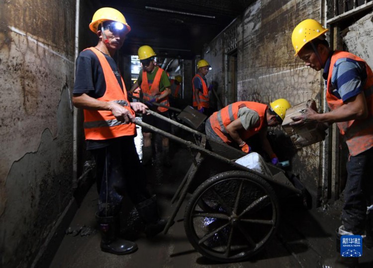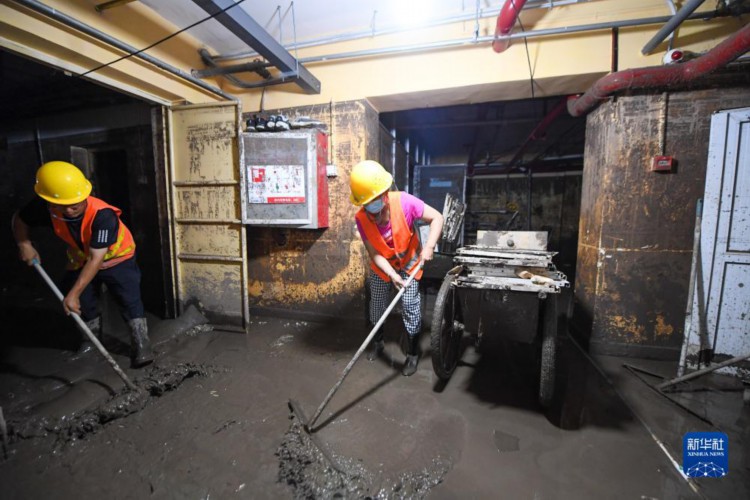 8月12日,在北京市門頭溝區(qū)醫(yī)院,因水災(zāi)影響無(wú)法從事原本工作的受災(zāi)群眾組成清淤隊(duì)伍,清理醫(yī)院地下室的淤泥和垃圾。 為加快展開(kāi)災(zāi)后各項(xiàng)工作,助力重建家園,近日,北京市門頭溝區(qū)人力社保局聯(lián)合各鎮(zhèn)街以及行業(yè)主管部門,結(jié)合受災(zāi)群眾務(wù)工需求,推出保潔、保安、維修、消殺、清淤等以工代賑崗位400余個(gè),吸納受災(zāi)群眾參與災(zāi)后恢復(fù)重建,就地就近就業(yè)。新華社記者 鞠煥宗 攝