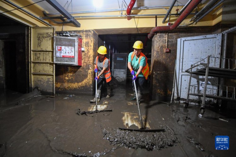 8月12日,在北京市門頭溝區(qū)醫(yī)院,因水災(zāi)影響無(wú)法從事原本工作的受災(zāi)群眾組成清淤隊(duì)伍,清理醫(yī)院地下室的淤泥和垃圾。新華社記者 鞠煥宗 攝 |