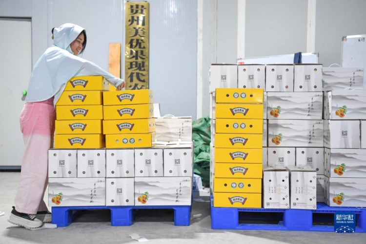 8月17日,工作人員在貴州省貴定縣德新鎮新鋪村黃桃種植基地的車間檢查黃桃包裝。 新華社記者 楊文斌 攝