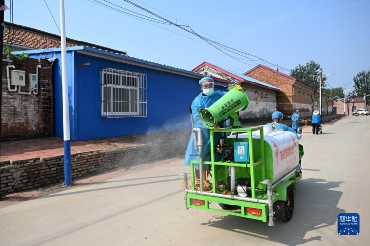 8月17日,工作人員在天津市武清區黃花店鎮邵七堤村進行環境消殺作業。