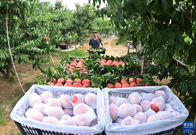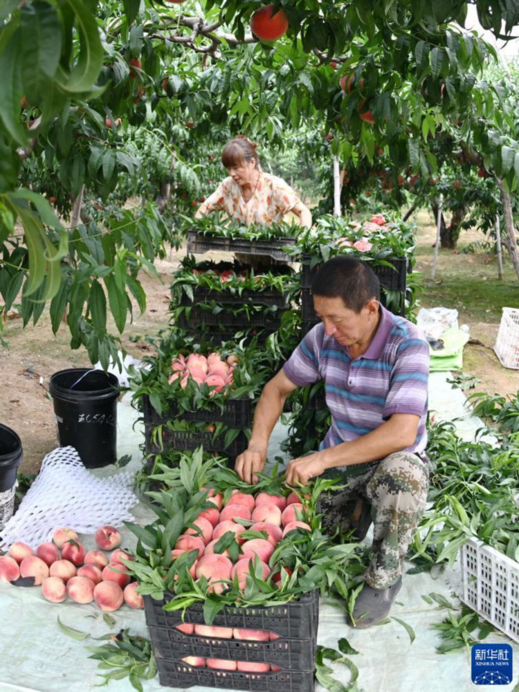 8月21日,唐山市豐潤區左家塢鎮農民將收獲的鮮桃裝筐。 近日,河北省唐山市豐潤區左家塢鎮的1.5萬畝鮮桃迎來收獲季節,果農們忙著采摘,供應省內外市場。近年來,豐潤區引導丘陵地帶的農民利用當地土壤、氣候特點,發展桃、蘋果等果樹種植,并推行標準化管理,促農增收。 新華社記者 楊世堯 攝