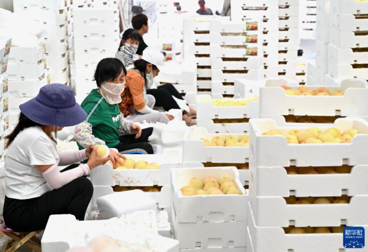 8月21日,唐山市豐潤區左家塢鎮一家鮮桃種植合作社的社員在分揀收獲的鮮桃。 近日,河北省唐山市豐潤區左家塢鎮的1.5萬畝鮮桃迎來收獲季節,果農們忙著采摘,供應省內外市場。近年來,豐潤區引導丘陵地帶的農民利用當地土壤、氣候特點,發展桃、蘋果等果樹種植,并推行標準化管理,促農增收。 新華社記者 楊世堯 攝