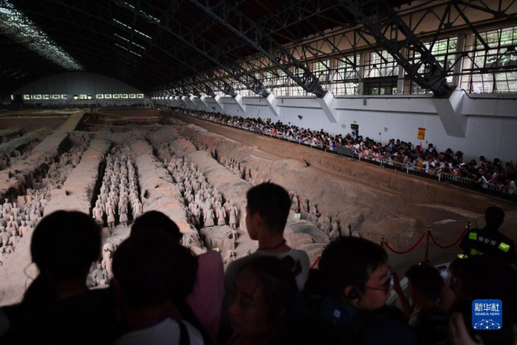 暑期將盡,但位于陜西西安臨潼區的秦始皇兵馬俑博物館旅游熱度不減,前來參觀的游客摩肩接踵。