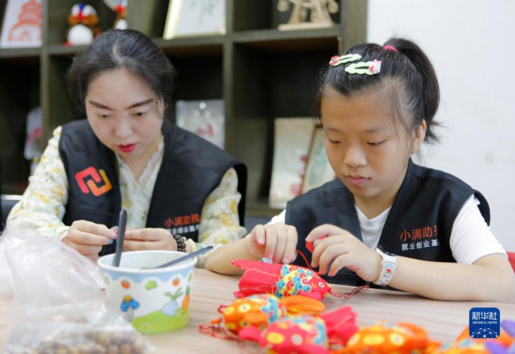 8月30日,在江蘇揚州小滿助殘就業創業基地,殘疾人士學習制作手工藝品。 近年來,江蘇省揚州市殘疾人聯合會加大殘疾人社會保障力度,通過技能培訓、創業指導等方式促進殘疾人家庭增收,改善殘疾人生活品質。據了解,揚州市全市每年約有1700名殘疾人參加技能培訓。 新華社記者 柳文惠 攝