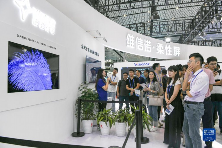 9月7日,在“2023世界顯示產業大會新型顯示創新成果展”現場,觀眾查看顯示產品。