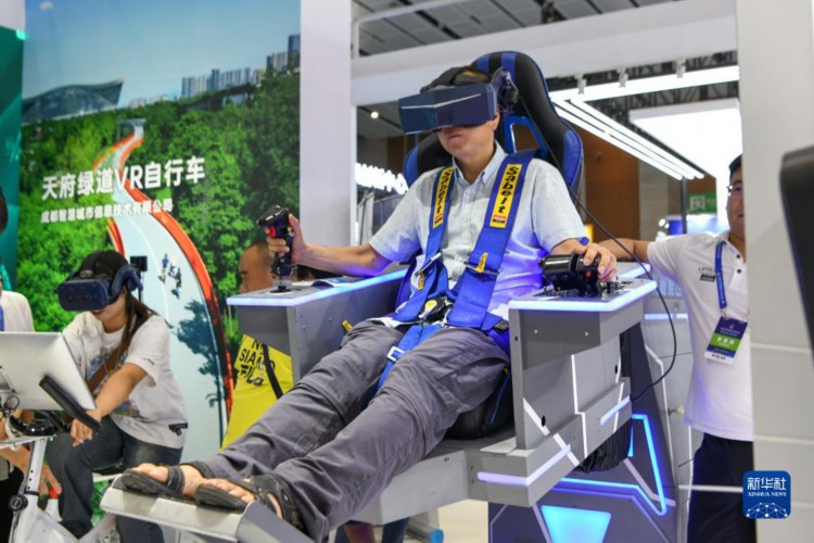 9月7日,在“2023世界顯示產業大會新型顯示創新成果展”現場,觀眾體驗VR飛行。