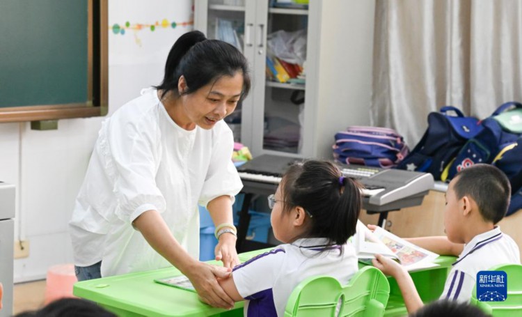 在海南(海口)特殊教育學校啟智三(1)班,班主任符堯惠為學生們上課(9月5日攝)。