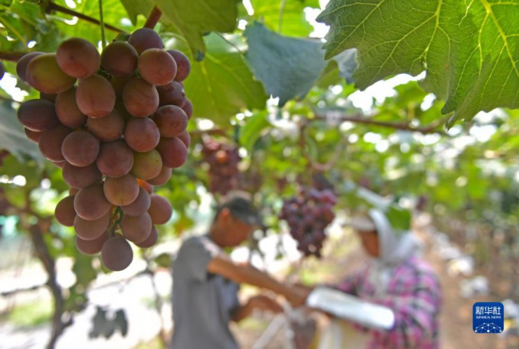 9月7日,在燈塔市柳條寨鎮遼峰葡萄核心產區,種植戶在大棚采摘葡萄。 近日,遼寧省燈塔市種植的遼峰葡萄喜迎豐收。燈塔市出產的遼峰葡萄遠近聞名,目前種植面積約1萬畝。當地已形成葡萄培育、種植、銷售、倉儲、加工相關產業鏈,葡萄是當地農民致富增收的特色產業。 新華社記者楊青攝