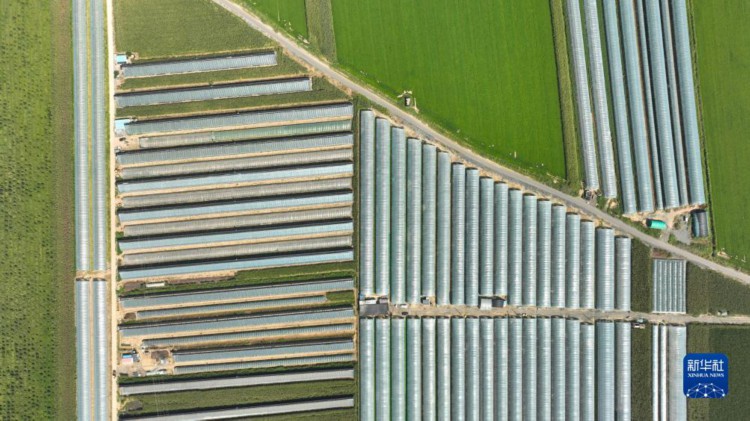 9月7日拍攝的燈塔市柳條寨鎮遼峰葡萄核心產區的葡萄種植大棚(無人機照片)。