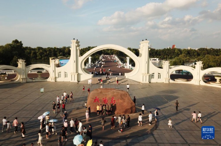 這是7月31日拍攝的太陽(yáng)島景區(qū)的太陽(yáng)石廣場(chǎng)(無人機(jī)照片)。