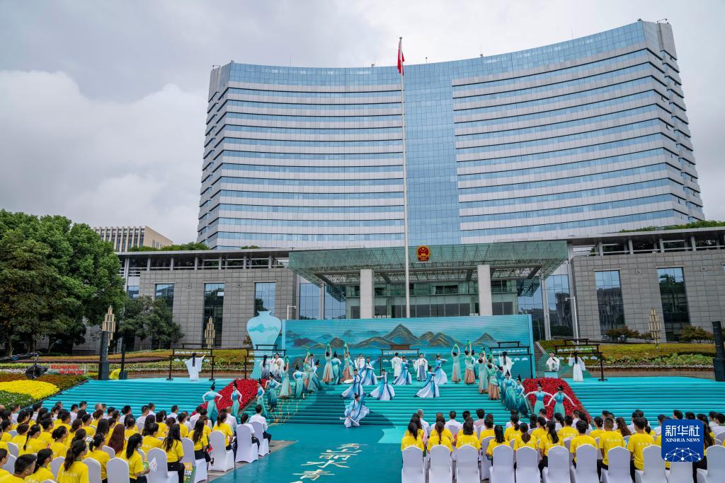 這是杭州亞運會火炬傳遞麗水站起跑儀式現場(9月16日攝)。