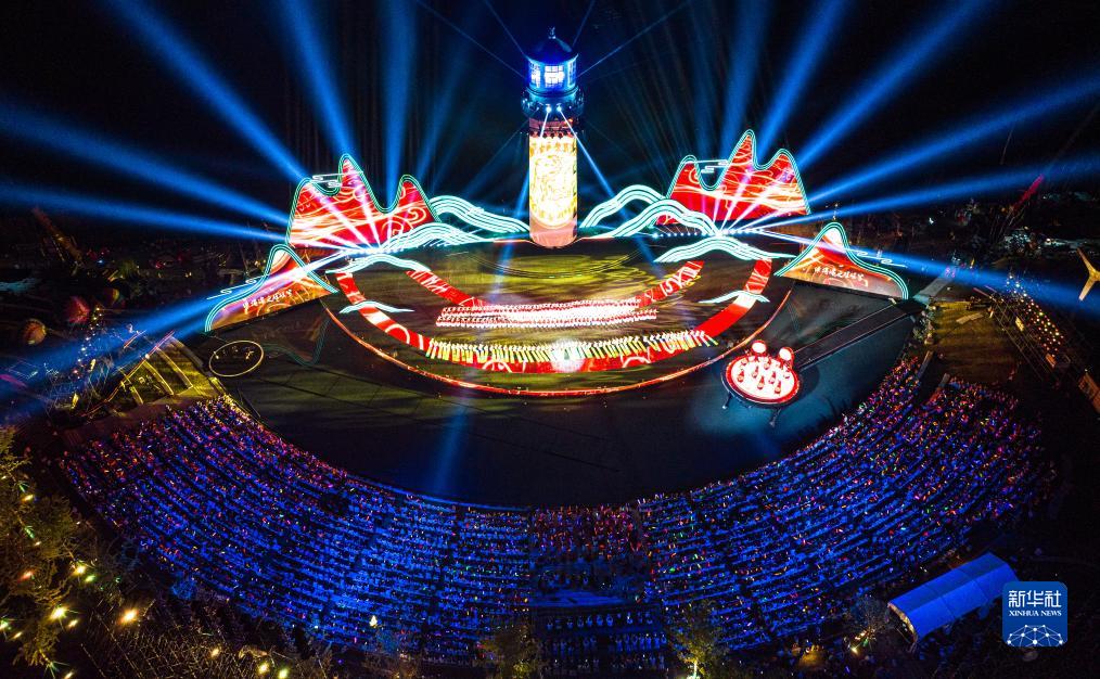9月16日,觀眾欣賞第十四屆中國長江三峽國際旅游節開幕式表演(無人機照片)。