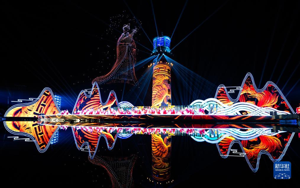 9月16日拍攝的第十四屆中國長江三峽國際旅游節開幕式無人機表演。