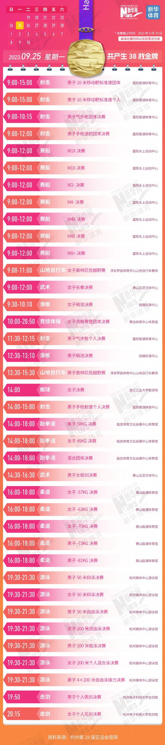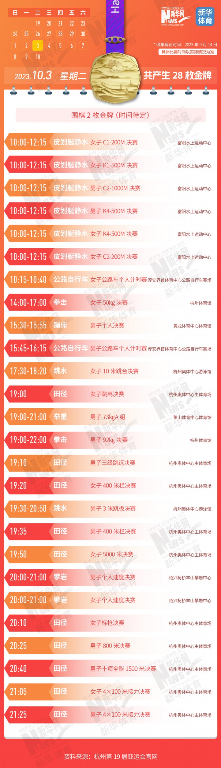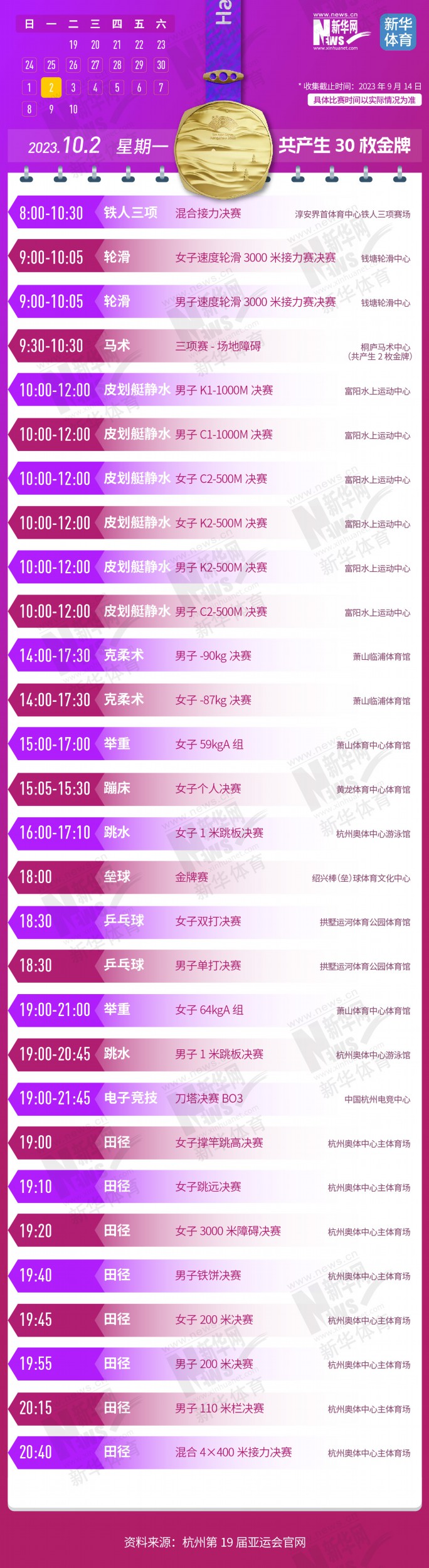 一鍵收藏!杭州亞運會金牌賽事日歷