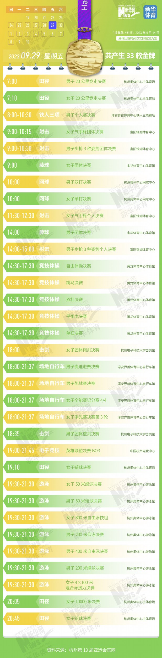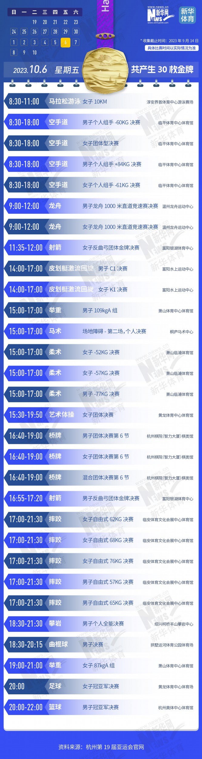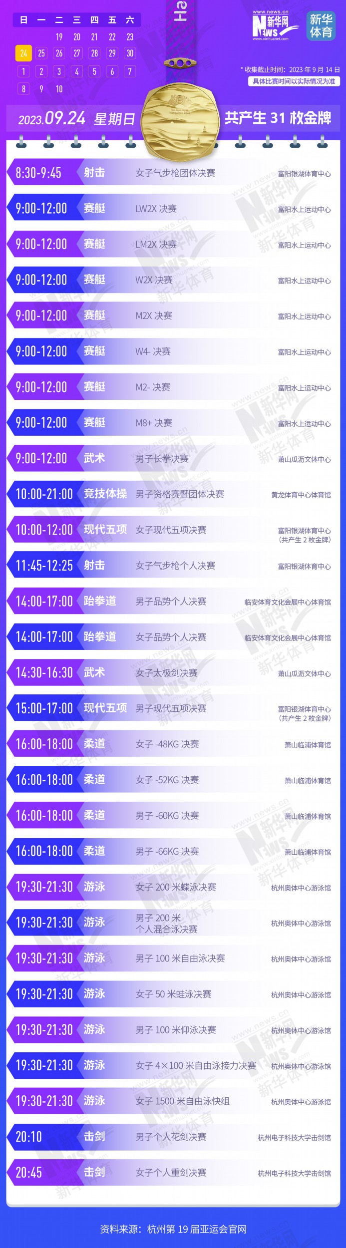 一鍵收藏!杭州亞運會金牌賽事日歷