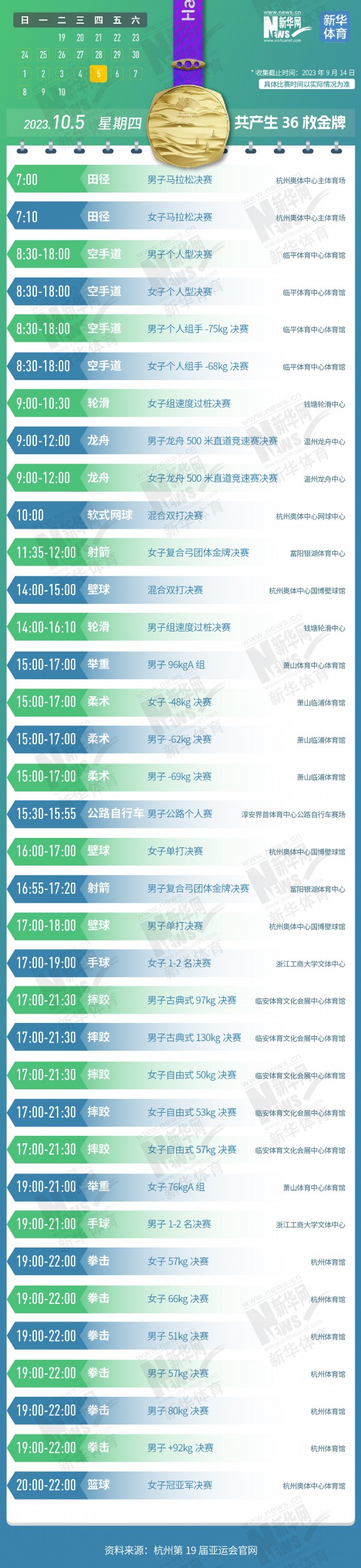 一鍵收藏!杭州亞運會金牌賽事日歷