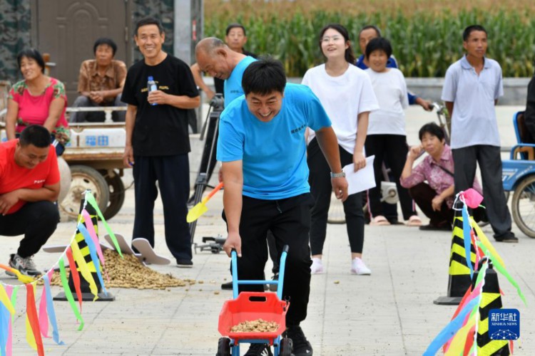 當日,河北省滄州市肅寧縣師素鎮舉辦農民趣味運動會,人們通過參與運花生、貼辣椒、豆類分揀等趣味運動項目,慶祝豐收。