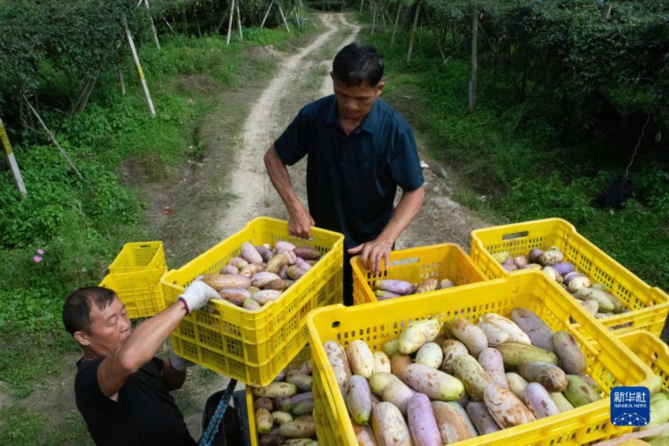 眼下,湖南省永州市藍山縣果農正忙著采摘八月瓜、獼猴桃等特色水果,以滿足市場需求。近年來,藍山縣通過實施良種嫁接培育、增施有機肥等技術,因地制宜種植八月瓜、獼猴桃等特色水果共7萬余畝,有效促進農業增效、農民增收。