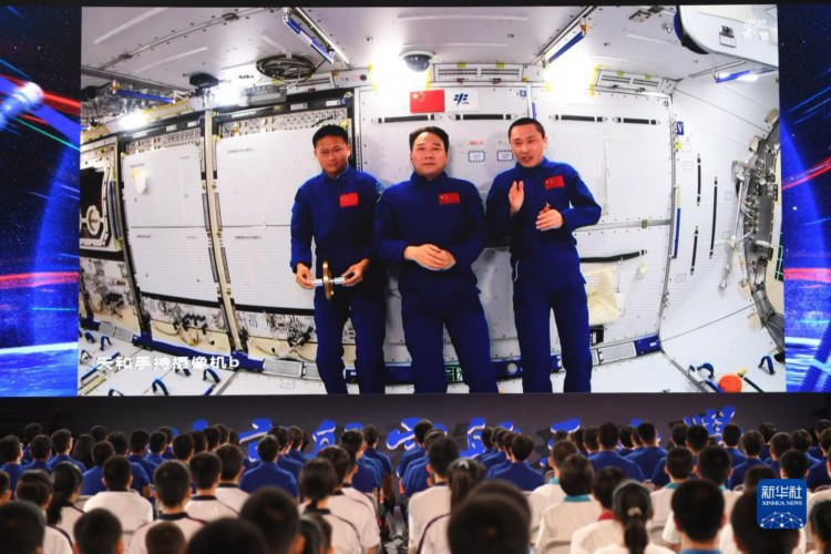 在約48分鐘的授課中,神舟十六號航天員景海鵬、朱楊柱、桂海潮生動展示介紹了空間站夢天實驗艙工作生活場景,演示了球形火焰實驗、奇妙“乒乓球”實驗、動量守恒實驗以及又見陀螺實驗,并生動講解了實驗背后的科學原理。授課期間,航天員通過視頻通話形式與地面課堂師生進行了實時互動交流。