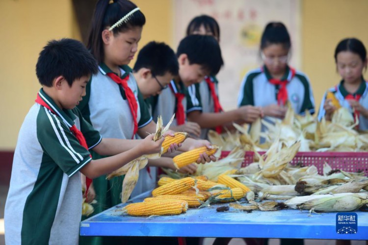 9月21日,滄州市新華區(qū)榮官屯小學的小學生在進行剝玉米皮比賽。 當日,河北滄州市新華區(qū)榮官屯小學舉辦“校園豐收節(jié)”,旨在培育學生正確的勞動價值觀,讓學生在豐富的活動中體會到勞動之美、豐收之樂。 新華社記者 王民 攝 |