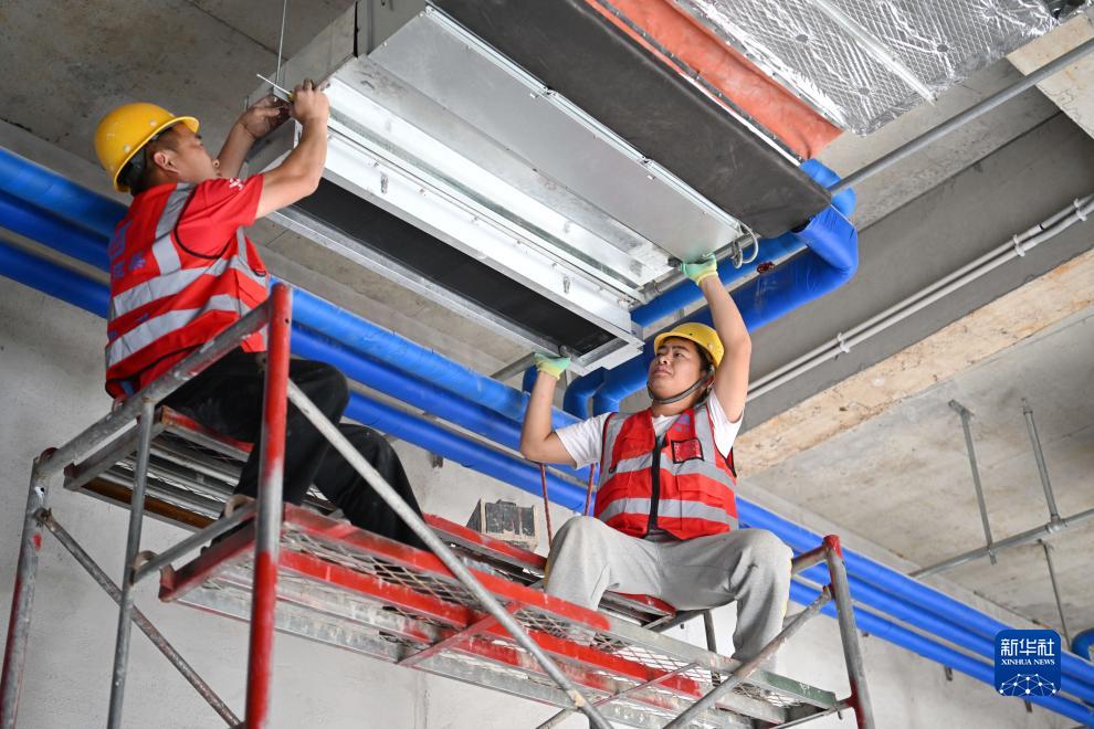 10月1日,中建二局華北公司工人在河北雄安新區(qū)容東華望城項目安裝設(shè)備。