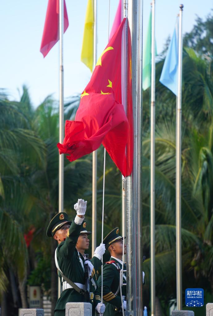 10月1日,海南省三沙市永興島上舉行升旗儀式。