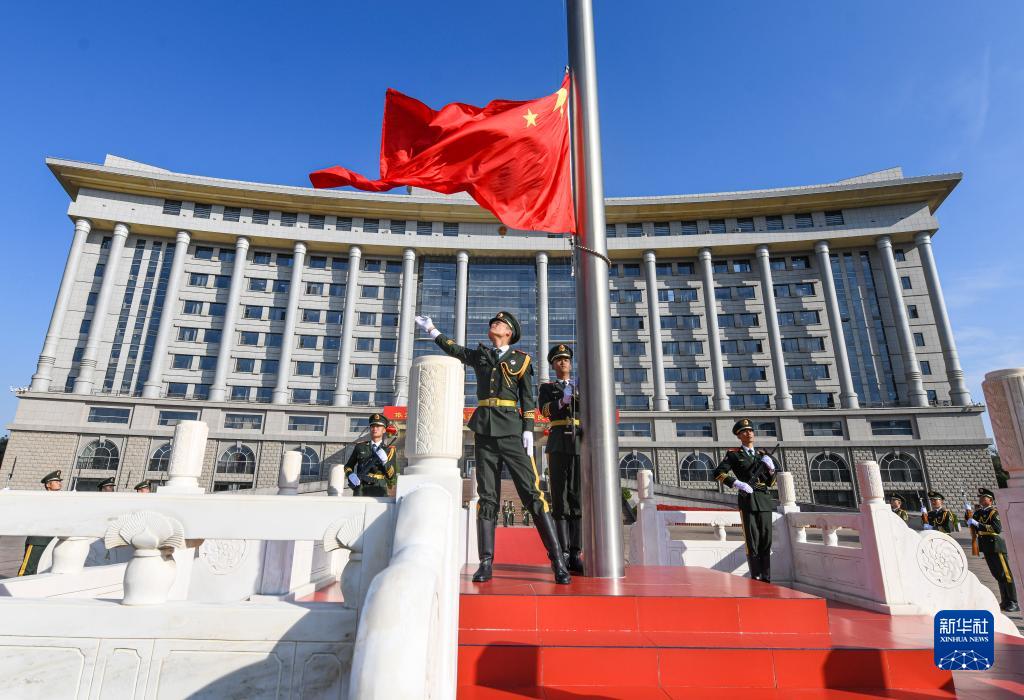 10月1日,新疆維吾爾自治區(qū)慶祝中華人民共和國(guó)成立74周年升國(guó)旗儀式在烏魯木齊市南湖市民廣場(chǎng)舉行。