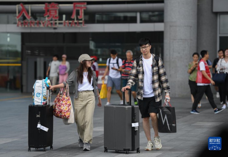 10月6日,旅客經由深圳灣口岸入境。 中秋國慶雙節假期期間,深圳各口岸客流持續保持高位。9月29日至10月6日21時,深圳灣邊檢站共查驗出入境人員約78萬人次。其中,10月2日經深圳灣口岸出入境旅客超12.7萬人次,刷新今年以來深圳灣口岸客流新高。 新華社記者 毛思倩 攝