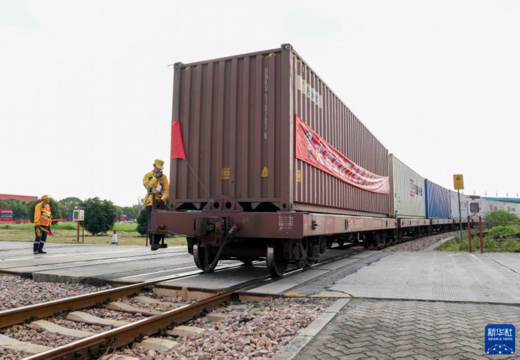 10月11日,“中歐班列—進博號”列車抵達上海。 當日,滿載著第六屆進博會的展品,從德國杜伊斯堡發車的今年第一列“中歐班列—進博號”抵達上海。伴隨著首列“進博號”的抵達,第六屆進博會籌辦重心轉入現場落地工作。 新華社記者 丁汀 攝