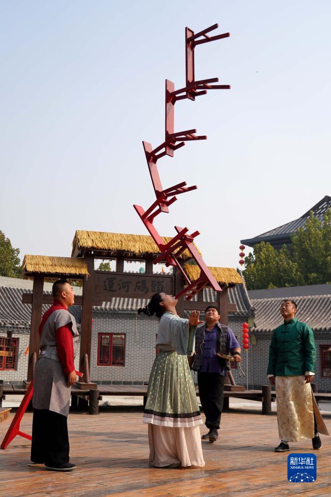 10月17日,雜技演員在吳橋雜技“九月廟會”上表演雜技節目。 金秋時節,河北省滄州市吳橋雜技“九月廟會”在吳橋雜技大世界景區開幕,雜技絕活、非遺展演輪番上演,讓觀眾感受吳橋雜技藝術魅力。“九月廟會”是吳橋傳統民俗活動,對吳橋雜技文化交流起著重要的推動作用。 新華社記者 駱學峰 攝