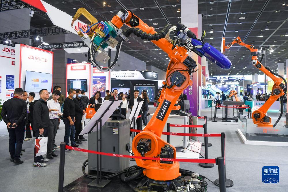 10月21日在2023世界物聯網博覽會活動現場拍攝的智能機器人工作站。