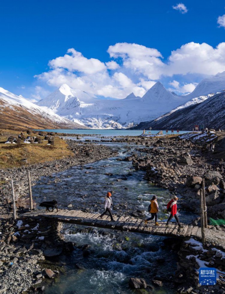 游客徒步經過薩普雪山腳下的木橋(10月28日攝)。 薩普雪山位于西藏那曲市比如縣羊秀鄉,雪山腳下分布著冰川、湖泊和草場,風景美不勝收。近年來,隨著交通條件不斷改善,越來越多的游客來到薩普雪山領略壯美風光。 新華社記者 孫非 攝