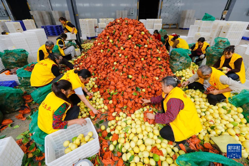 10月31日,在位于四川資陽市安岳縣的四川省維記農業集團有限公司,工人初步挑選新鮮檸檬。