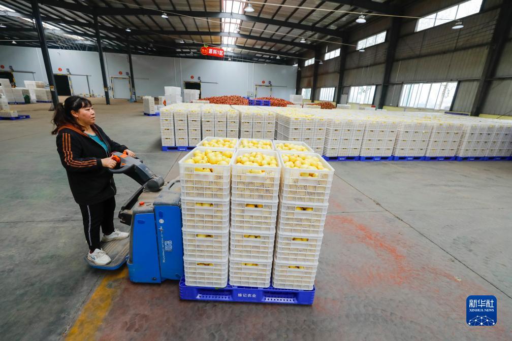 10月31日,在位于四川資陽市安岳縣的四川省維記農業集團有限公司,工人將初步挑選好的新鮮檸檬運至生產線進行清洗、分選等處理。
