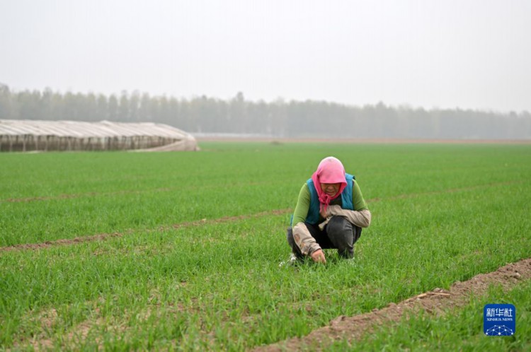 11月2日,在天津市西青區(qū)辛口鎮(zhèn)當(dāng)城村,農(nóng)戶在查看冬小麥的生長(zhǎng)情況。