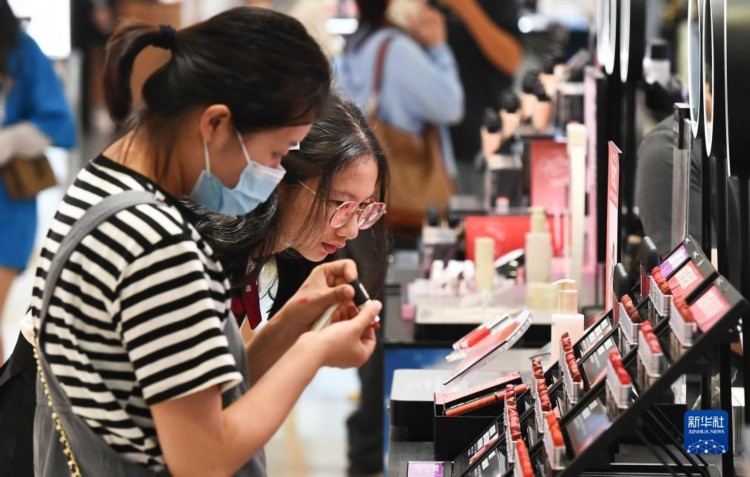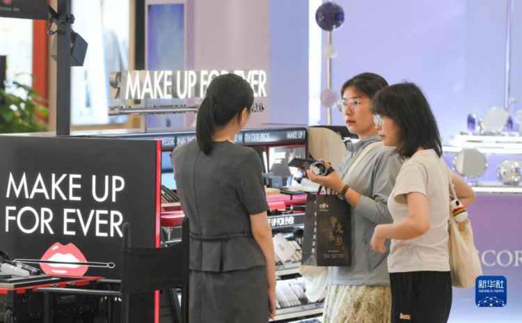 游客在中免集團海口日月廣場免稅店選購商品(8月5日攝)。