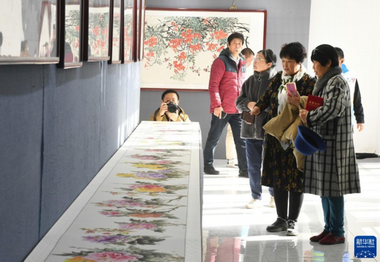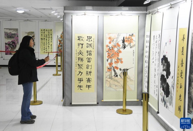 11月12日,觀眾參觀第十一屆“大美平谷·水墨周莊”書畫展。 當日,第十一屆“大美平谷·水墨周莊”書畫展在北京市平谷區大興莊鎮開幕。據了解,本次書畫展共展出200余名書畫愛好者的300余幅國畫山水、傳統書法作品。展覽旨在豐富村民的文化生活,將持續至11月30日。 新華社記者 任超 攝