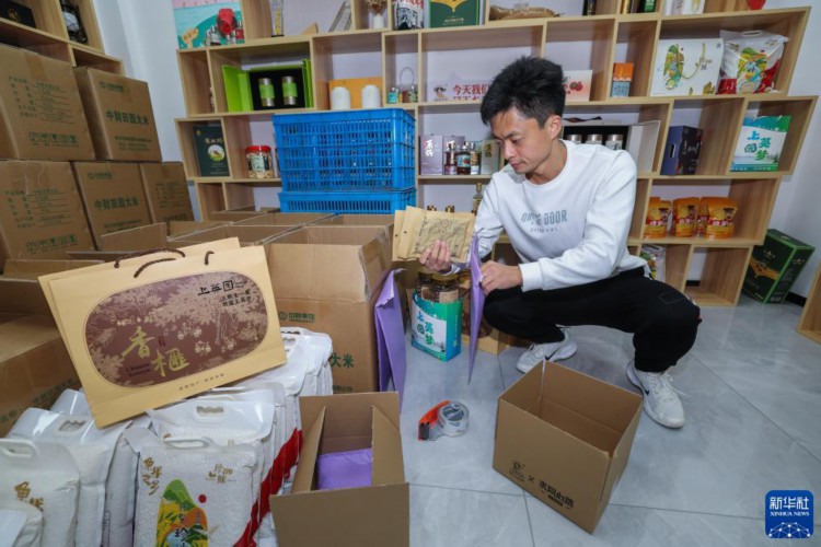 11月12日,浙江省諸暨市東白湖鎮上英村黨總支書記趙堅均在直播間打包香榧產品準備發貨。 初冬時節,包括香榧炒制大賽、香榧盆景展、特色農產品展銷、香榧年貨直播節等活動在內的諸暨市東白湖鎮香榧文化旅游節正式啟動。東白湖鎮以農事節慶為契機,通過創品牌、拓市場,不斷提升農副產品的附加值和鄉村旅游熱度。 浙江紹興諸暨市東白湖鎮是香榧主產區之一,近年來,東白湖鎮聚焦富民增收,吸引種植戶、鄉賢、青創客等群體參與推進香榧產業的發展。2022年以來,東白湖鎮香榧特色露營基地、精品民宿、香榧盆景等新興業態已吸引游客約20萬人次,香榧產業鏈已帶動近6000戶農戶增收致富,戶均年增收2萬元以上,特色香榧產業成為百姓“搖錢樹”,助力百姓共富。 新華社記者 徐昱 攝