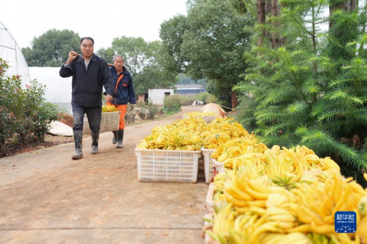 11月13日,在金華市婺城區金手寶佛手農莊,工作人員將采摘的佛手外運。 隨著天氣轉涼,浙江省金華市的傳統經濟作物佛手進入集中成熟期。金華市婺城區佛手種植總面積達550畝,預計產量可達1200噸。佛手產于我國南部多省,其中以浙江金華佛手最為著名,又稱“金佛手”。 新華社記者 翁忻旸 攝