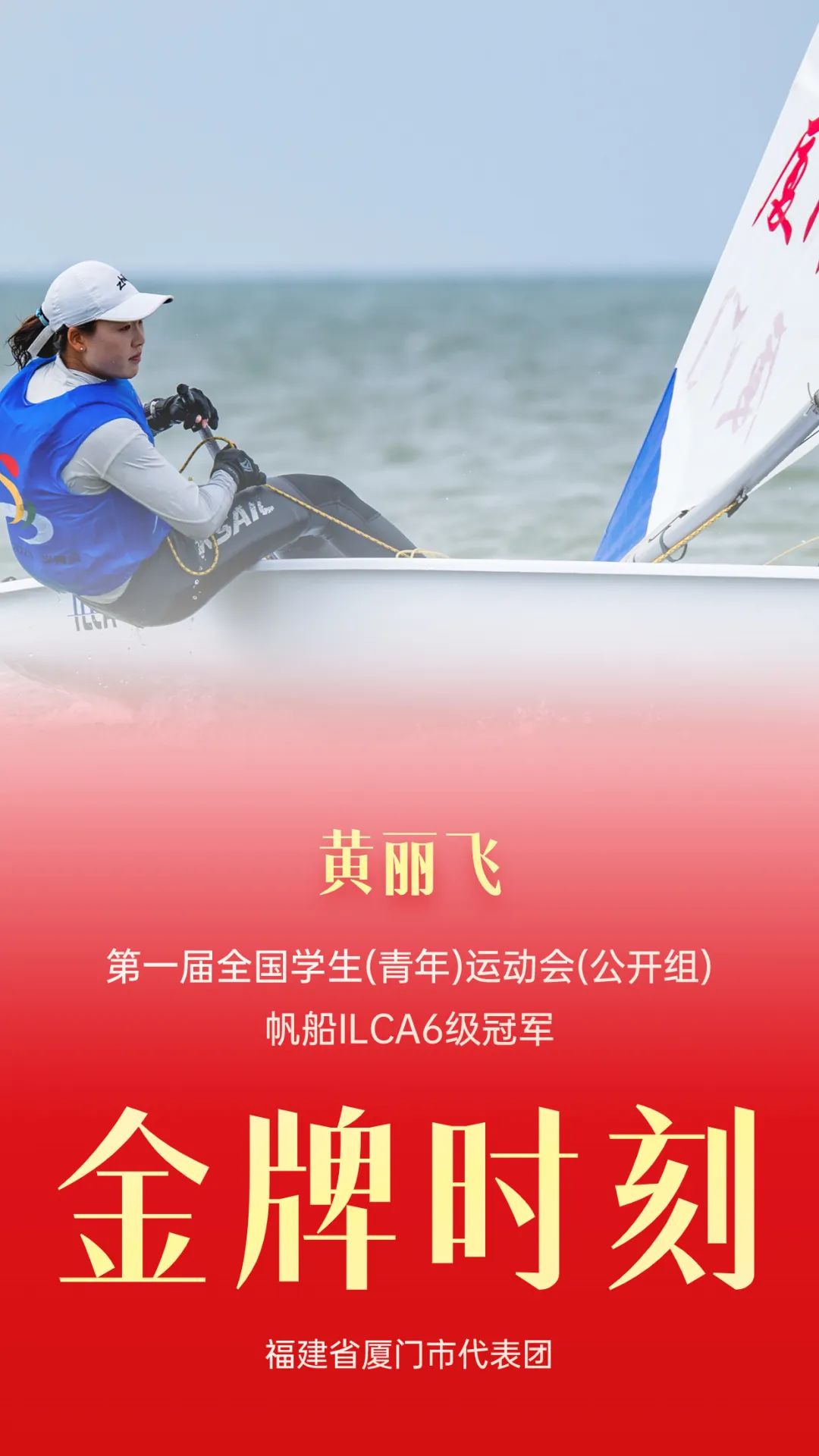 11月13日,在第一屆全國學生(青年)運動會(公開組)帆船比賽項目中,代表福建省廈門市參賽的運動員黃麗飛奪得帆船女子ILCA6級冠軍,這也是福建在本屆學青會(公開組)取得的第28枚金牌。