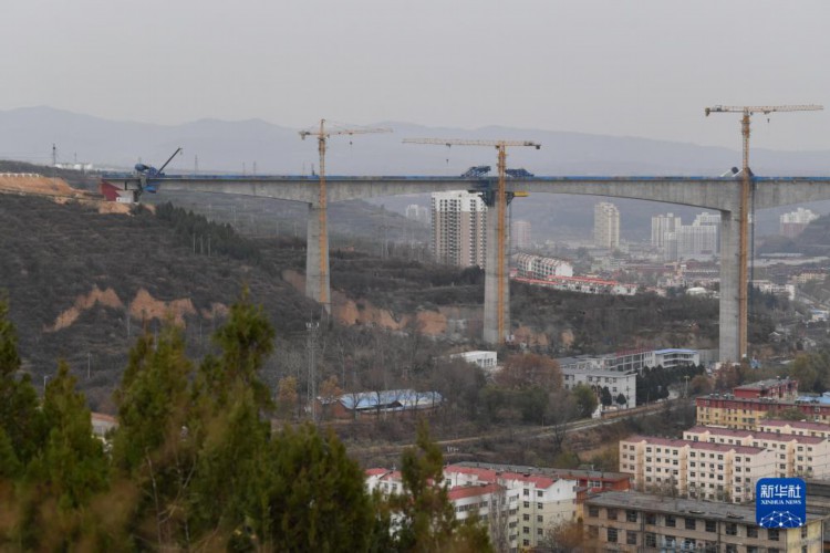 這是11月15日拍攝的西延高鐵王家河特大橋。 當(dāng)日,由中國鐵建大橋工程局承建的西(安)延(安)高鐵王家河特大橋主橋順利合龍。王家河特大橋位于陜西省銅川市王益區(qū)境內(nèi),全長1066.7米,是西延高鐵全線跨度最大、高度最高的橋梁。 西延高鐵是陜北革命老區(qū)首條高速鐵路。項目建成后,西安至延安的鐵路運行時間將從目前的2個半小時縮短至1小時左右,對便利沿線群眾出行、鞏固革命老區(qū)脫貧攻堅成果有重要意義。 新華社記者 張博文 攝