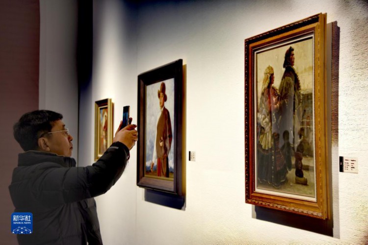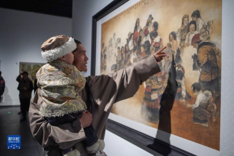 11月15日,觀眾在西藏美術館參觀畫作《草原紀事》。