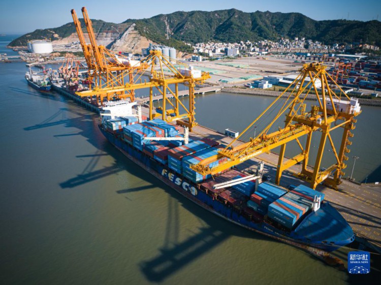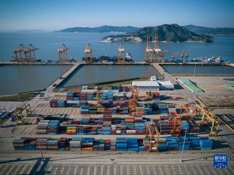這是11月22日拍攝的溫州港狀元岙集裝箱碼頭。 近年來,浙江省溫州港通過完善港區內基礎設施、提升港口開放能級、助力臨港產業培育等措施,實現溫州港港口貨物吞吐穩步增長。截至2023年10月,溫州港已完成貨物吞吐量7236.96萬噸,同比增長4.25%。 新華社記者 江漢 攝
