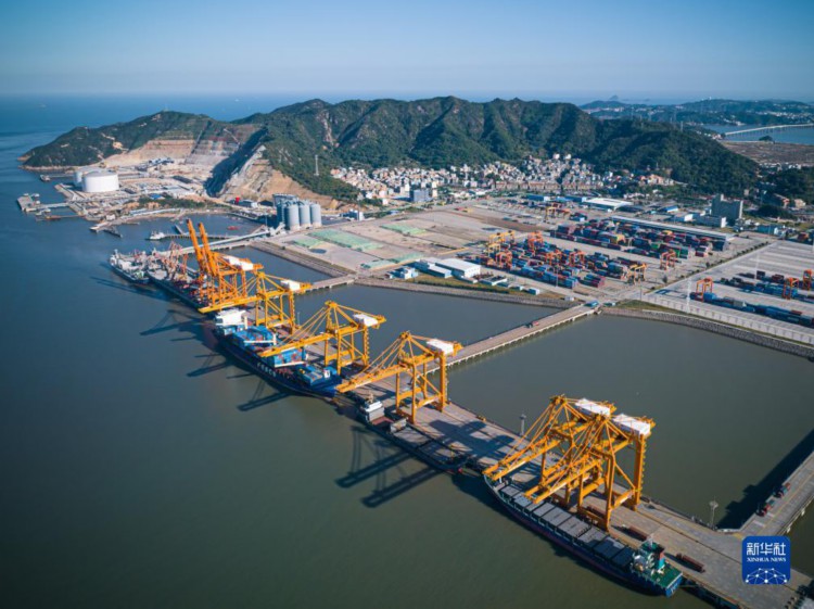 這是11月22日拍攝的溫州港狀元岙集裝箱碼頭(無人機照片)。