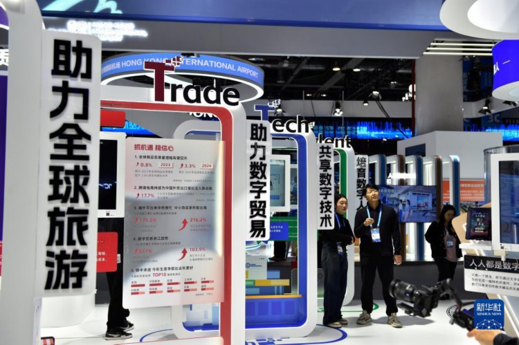11月23日,參觀者在第二屆全球數字貿易博覽會參觀。 當日,第二屆全球數字貿易博覽會在浙江杭州開幕。本屆數貿會以“數字貿易 商通全球”為主題,以“一體運營,數實融合”為特色,設置會議、展覽、平臺、活動四大板塊,匯聚超800家境內外數字貿易企業參展。 新華社記者 劉嶺逸 攝