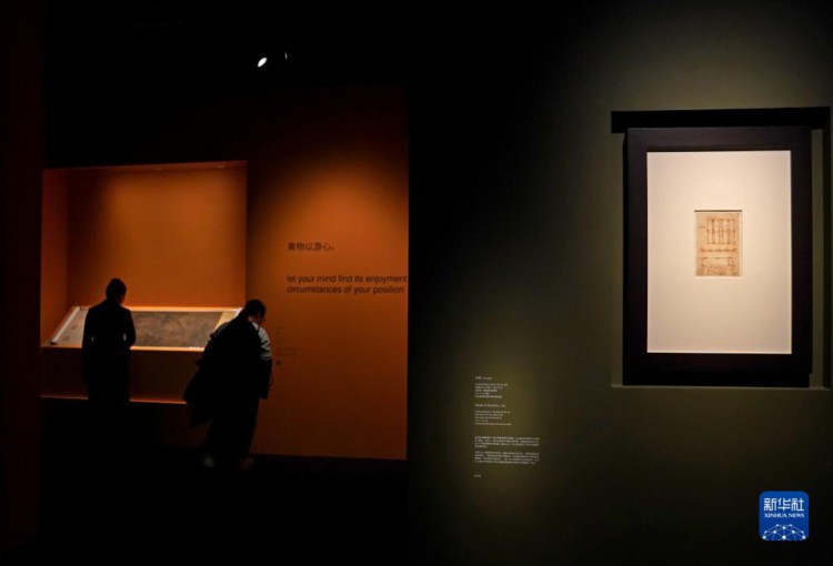 12月10日,達·芬奇的《大西洋古抄本》手稿之《木亭》(右)與中國古代繪畫名作《閘口盤車圖卷》(左)同廳展出。